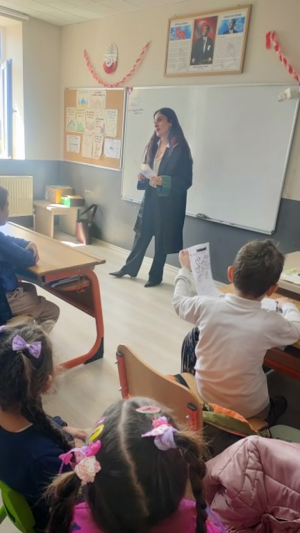 Okul Müdürümüz Buket BÖLÜKBAŞI KURTMAN tarafından yürütülen Ailemle Eğitim Yolculuğum Projesi kapsamında Ana Sınıfı Öğrencilerimiz Yaz ENGİN'in Teyzesi Avukat Sayın Merve YILDIZ okulumuza gelere Avukatlık mesleğini bizlere tanıttı. Nasıl avukat olduğunu,hangi okullardan mezun olduğunu, avukat olmak için neler yaptığını,birçok terimin (kanun çeşitleri, cübbe,dava,adliye,kanun,yasa vb) anlamını bizlere açıkladı. Yanında getirdiği medeni kanun kitapçığını öğrencilerimiz ilgiyle ve merakla inceledi. Öğrencilerimiz,merak edip, öğrenmek istedikleri soruları Avukatımız Merve YILDIZ 'a yöneltti. İlerde hangi meslekleri yapmak istediklerini dile getiren öğrencilerimizden bazıları avukat olmak istediklerini de belirtti.